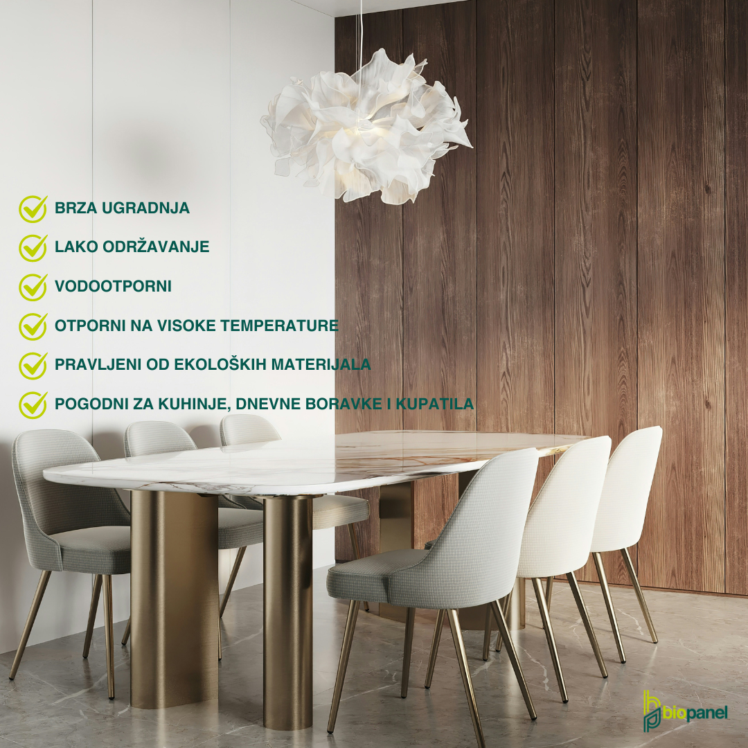 Ekološki prihvatljiviji, a dugotrajniji od PVC panela jer se proizvode od obnovljivih materijala koji smanjuju uticaj na okolinu.